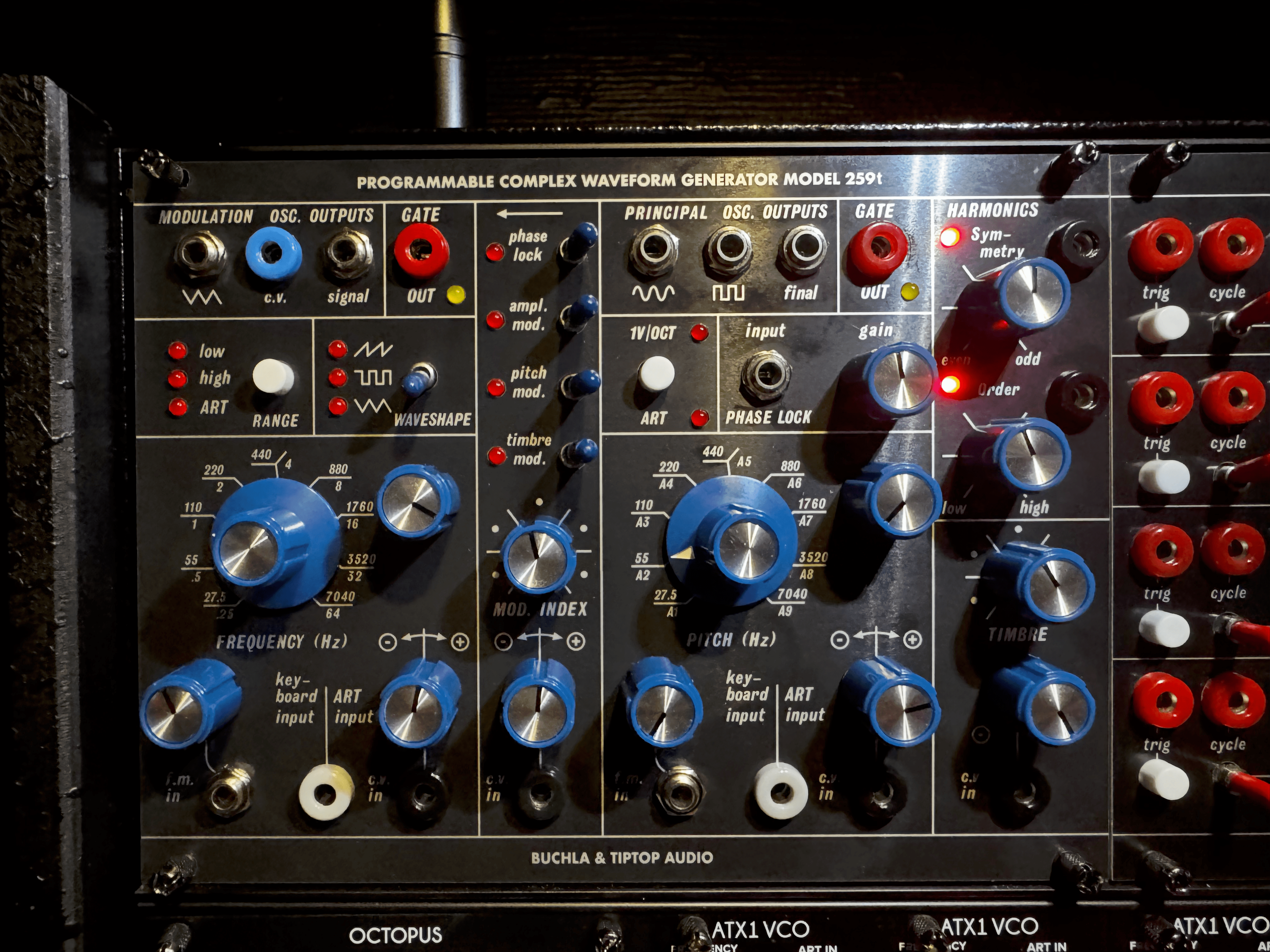 Limited quantity alternate aluminum front panels for the TipTop Buchla 259t Programmable Waveform Generator. These panels are relatively easy to install yourself and are black with all text and graphics from the original panel rendered in natural aluminum. The panel is 0.039″ Satin Aluminum, so it is considerably lighter than the original panel, while still remaining sturdy and durable. For full details on the TipTop Buchla 259t, please see ModularGrid.